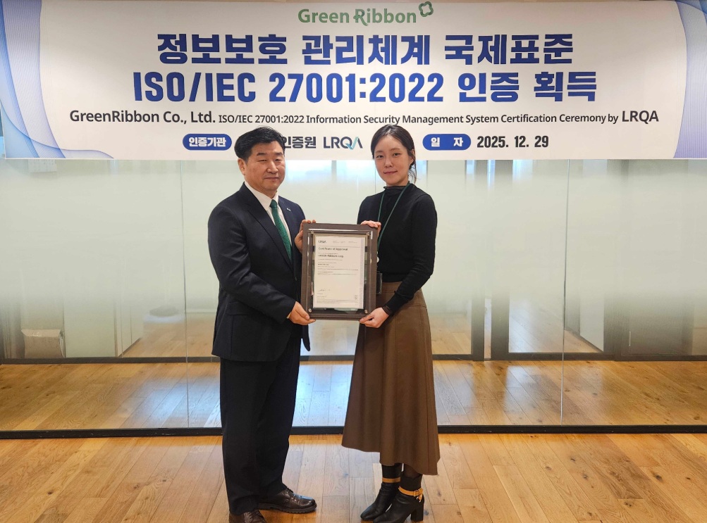 12월 29일, 인슈테크기업인 그린리본의 정보보안 경영시스템 (ISO/IEC 27001) 인증서 수여식이 진행되었습니다.